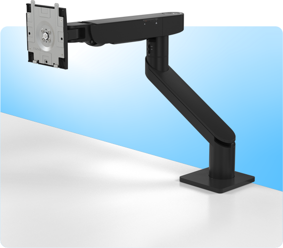 19" to 40" (monitor mounting only) | Swivel: Switchable 180° and 360° at base and joint. 180° at monitor | Tilt: -35° to +80° | Height Adjustability: 10.5" | Depth adjustment: 21.6"